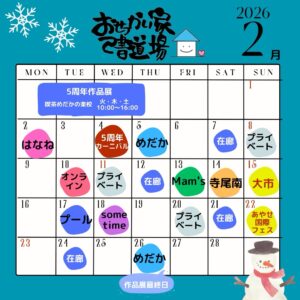 また在廊日もカレンダーに記載したので、参考にしてくださいね。