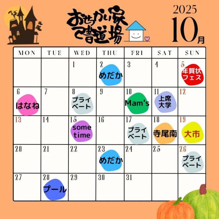 10月の己書 基地前Mam's Kitchen幸座 Vol.34