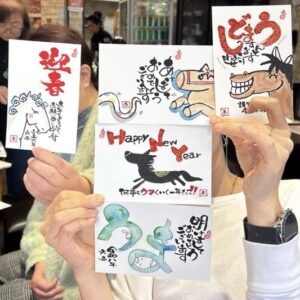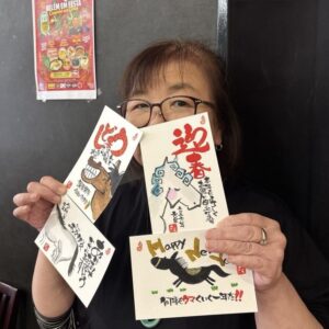 描きたいなと気になった年賀状を迷いなくサクサク仕上げていく。