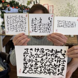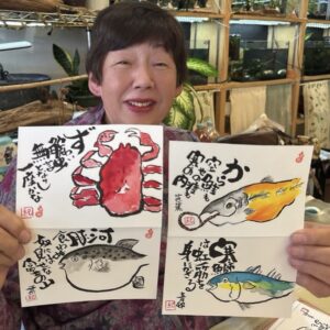 毎月第1、4木曜日はめだかの泳ぐ喫茶店喫茶めだかの楽校さんで己書幸座。