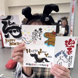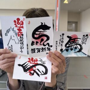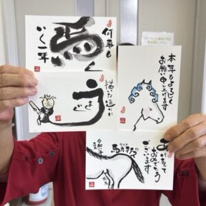 ウマの描き方に迷って、練習ではどんどん大きくなりましたが清書はバッチリ。