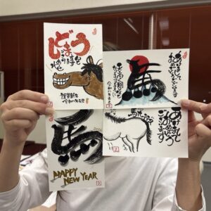 走り出しそうな馬の文字から、やさしいひらがなまでしっかり描き分けてますね。
