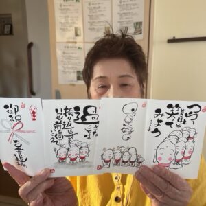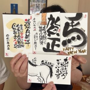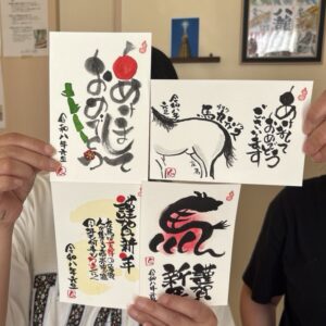 師範が年賀状を短時間に何枚も仕上げていて、圧巻でした。