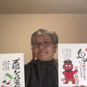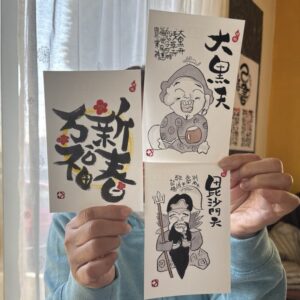 福がいっぱいの優しいお顔の七福神に、堂々とした文字。どちらも描けちゃうのがさすがです。